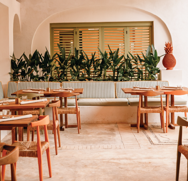 It is a place that stimulates the mind and soul, fusing gastronomy, aesthetics, and nature. Inspired by the Italian Masseria (farmhouse) of Puglia, the space speaks through classical shapes and curves, surrounded by the jungle.